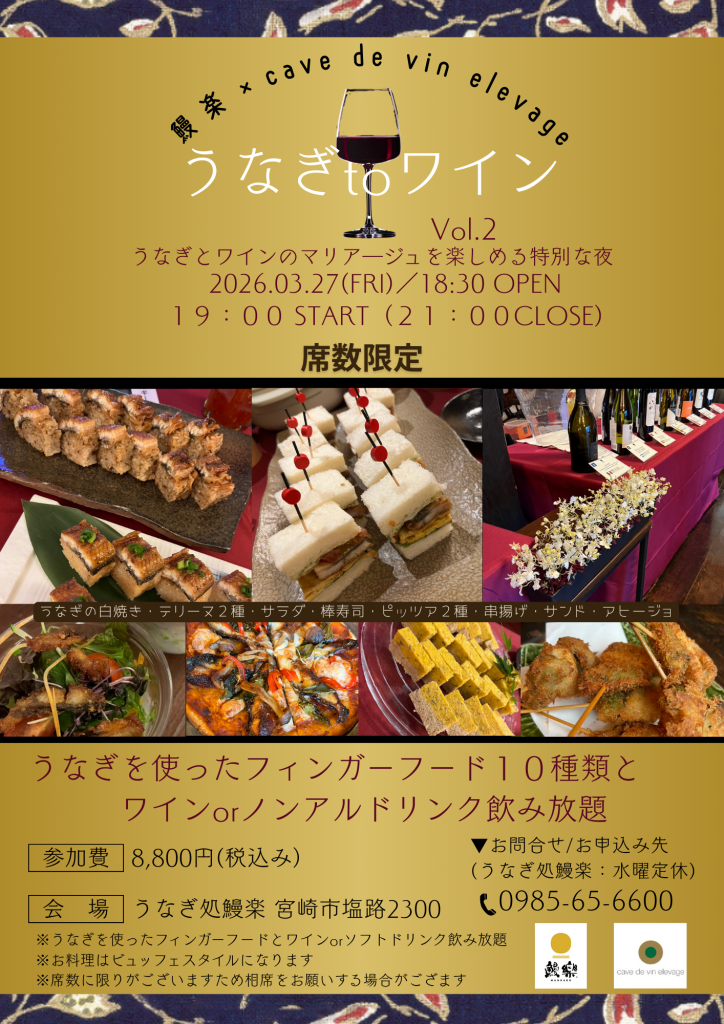 【うなぎ処鰻楽 イベント開催のお知らせ】うなぎtoワインVol.2