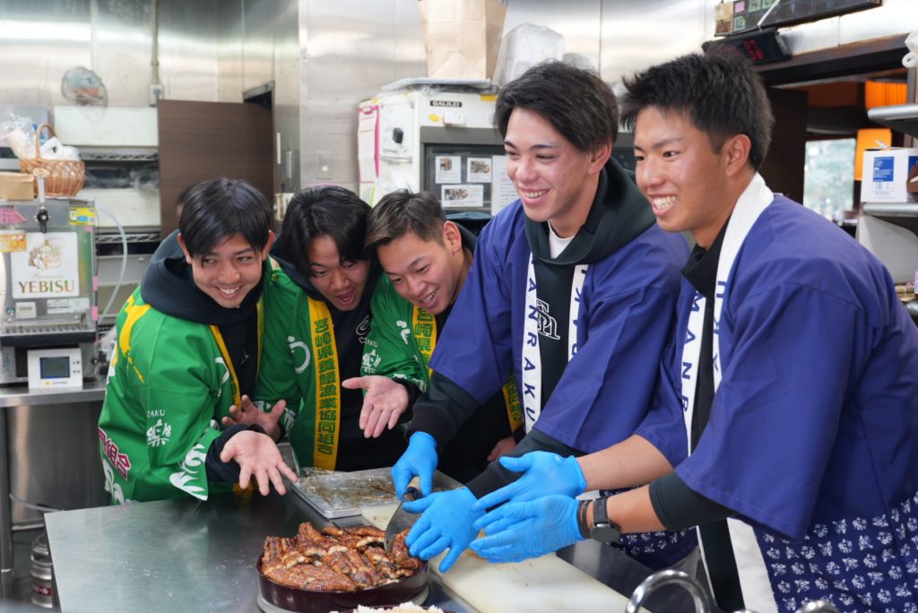2月5日の休養日に「うなぎ処 鰻楽」にてうなぎのつかみ取りやうな重の調理を体験されました。